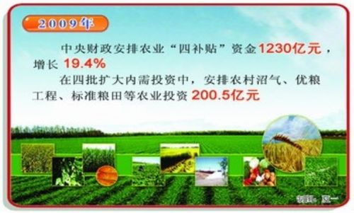 目前中央财政已安排农业“四补贴”资金1230亿元,增长19.4%;安排农村沼气、优粮工程、标准粮田等农业投资200.5亿元。增加农业补贴进一步调动了地方和农民积极性,加大公共事业投入进一步改善了农村民生,实施促进消费措施进一步开拓了农村市场,户外直播政策效应得到充分发挥。