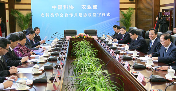 1月28日,农业部、中国科协在北京签署《中国科协农业部关于合作共建中国农学会等九家学会的协议》,决定合作共建由中国科协业务主管、挂靠农业部管理的中国农学会等九家农科类学会。农业部部长韩长赋,中国科协常务副主席、书记处第一书记邓楠出席签字仪式并讲话。
