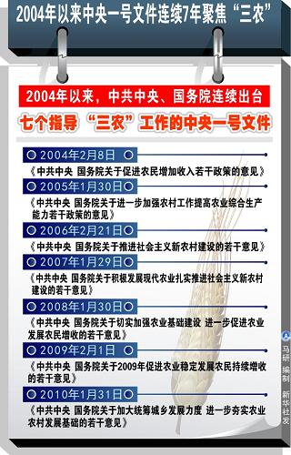 图表:2004年以来中央一号文件连续七年聚焦“三农” 新华社发