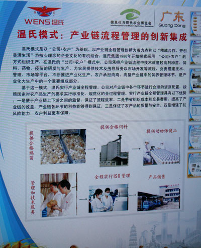 广东温氏食品集团有限公司创建于1983年,经过26年的快速发展,现已成为国家农业产业化重点龙头企业、全国文明单位、广东省农业龙头企业、广东省高新技术企业、广东省百强民营企业。2009年上市肉鸡6.77亿只、肉猪345万头,实现年销售总额达172亿元。