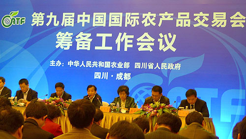 4月8日,农业部在四川省成都市组织召开第九届中国国际农产品交易会筹备工作会议。会议由农业部总经济师张玉香主持,陈晓华副部长发表了重要讲话,四川省副省长钟勉出席会议并致辞。农业部市场与经济信息司、部信息中心、全国农业展览馆和部农业贸易促进中心等单位的负责人,以及各省(区、市)农业(农牧)厅(委、局)分管领导及主管处室负责同志参加了会议。我厅党组成员、巡视员刘金生,省农展馆馆长叶细养等同志参加了会议。