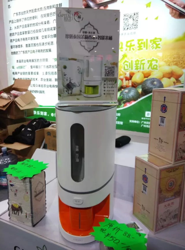 这是能防虫除螨、智能提醒用米量并且一键下单送米上门的智能米缸,吸引街坊们咨询购买,这是农业智能家具的魅力。
