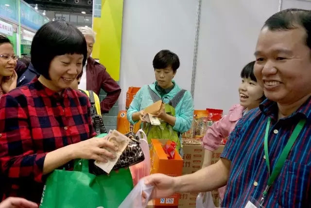 看,大家买得满足,老板笑得开心!农博会真正实现了多方共赢!