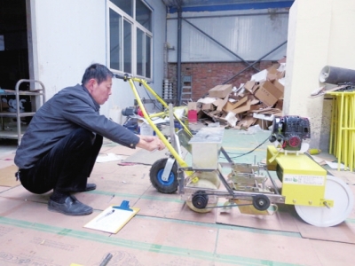 李跃文正在对播种机进行改制。