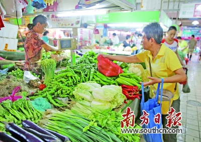 受台风影响,2日早前往广州犀牛路菜市场买菜的市民明显减少。