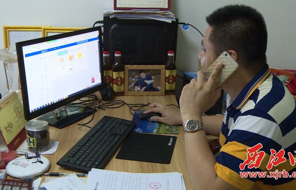 德庆县电子商务协会会长欧伟在处理电商事务。记者 梁惠明 摄