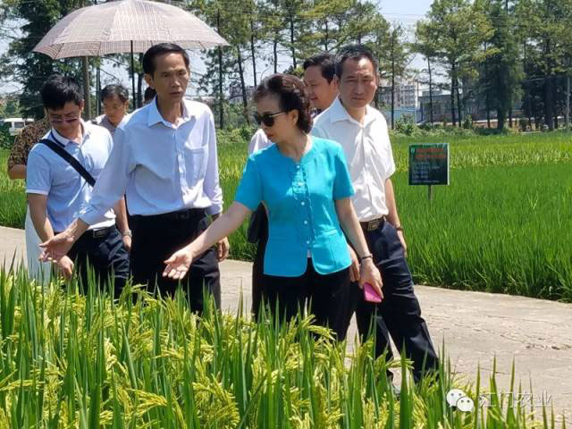 签约仪式结束后,程萍、容福华等一行还参观了杂交水稻研究中心,察看了总理基金支持项目超优1000示范田。