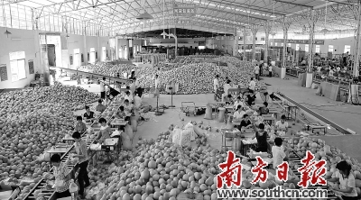 广东蜜柚农产品加工现场。资料图片