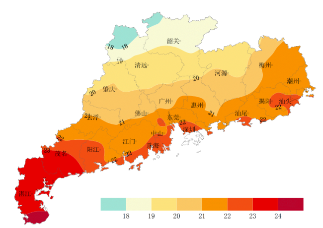 上周(11月13~19日),全省平均气温21.1℃,较常年同期偏高2.0℃,其中南部大部、东北、中部局部地区21.0~24.3℃,其余大部分地区17.4~21.0℃(图1)。平均日照时数9.1小时,较常年同期偏少7成多。周内全省平均累积降水量21.1毫米,较常年同期显著偏多近7成,其中西北、中部大部、潮州、汕头和雷州半岛局部地区偏多5成~3.4倍(增城3.9倍、东莞5.1倍),西南局部、东南局部、东北、西北偏北地区偏多1~5成,其余大部分地区正常到偏少1倍(图2)。目前,全省晚稻已经成熟,大部分地区已完成收晒工作;秋花生已经成熟收获;荔枝处于冬梢生长期;春植蕉处于营养生长期。上周气温偏高,日照显著偏少,降水偏多,多雨寡照天气不利于小部分地区成熟晚稻的收晒归仓,但降水充足利于冬种工作的开展。旬末受强冷空气影响,大部分地区气温骤降,但对冬种作物影响不大。综合评价上周农业气象条件较好。