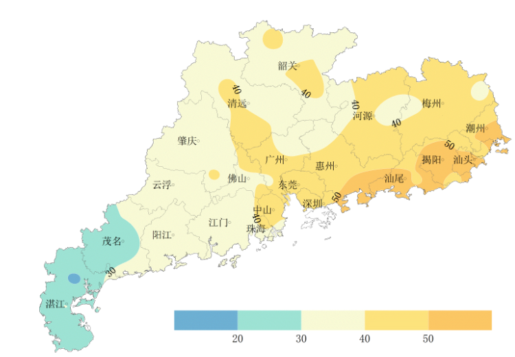 〖内容提要〗上周广东省气温偏高、光照偏多,降水显著偏少。温高光足的天气条件利于冬种作物生长,促进蕉柑光合作用,有利于果实糖分累积,但周内大部分地区降水偏少,对无灌溉设施的在田作物生长及水库蓄水有不利影响。预计本周前期以晴间多云天气为主,周末期中北部将有一次降水过程。建议各地加强作物田间管理,注意蓄水和节约用水,确保冬种生产用水之需。