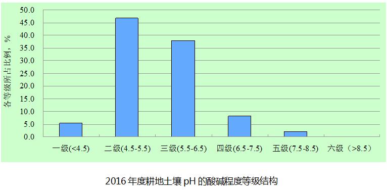 监测数据显示,广东省耕地土壤较突出的问题主要表现为酸化问题,90%以上的土壤偏酸性,土壤pH平均值约5.5。