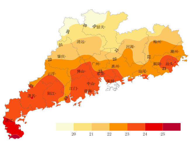上周(4月9-15日),全省平均气温22.4℃,较常年同期偏高1.2℃,各地气温由北至南递增,其中北部19.6~22.0℃,雷州半岛24.0~25.2℃,其余地区22.0~24.0℃(图1);全省平均累计降水量29.2毫米,较常年同期偏少3成,各地降水不均,其中东莞-广州-清远一带40~138.3毫米,较常年同期偏多5成~1.2倍,其余大部分地区降水少于40毫米,且较常年同期偏少3~8成(图2);全省平均累计日照时数23.8小时,较常年同期偏多近4成,其中东南沿海和雷州半岛30~56.3小时,其余大部分地区10~30小时。