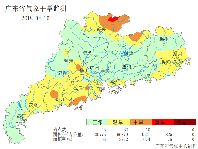 图4 4月16日广东省气象干旱分布图