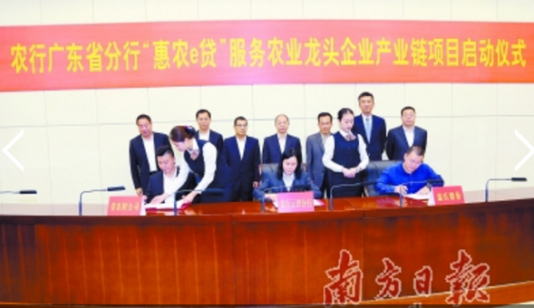广东农行举办“惠农e贷”服务农业龙头企业产业链项目启动仪式。