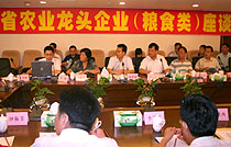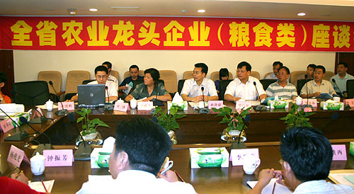 座谈会邀请有关专家介绍了世界粮食贸易发展趋势及对中国的影响、全省粮食生产情况与供需形势、粮食储备政策等情况,龙头企业代表围绕开展产业化经营、促进粮食增产、农民增收进行广泛而深入的交流,并就做强做大粮食类农业龙头企业建言献策。受省农业厅有关领导的委托,省农业厅经管处耿静超处长在座谈会上通报了全省农业产业化经营形势和粮食类龙头企业发展概况,要求广大农业龙头企业要不断提高“自主创新能力、市场竞争能力、持续发展能力、有效供给能力、灾害应对能力、辐射带动能力”六方面的能力,并倡议广大农业龙头企业要敢于承担更多的社会责任,在谋求自身发展、保障市场供给和农产品质量安全的同时,结合自身生产经营实际,充分发挥企业人力、财力、物力、智力以及组织方面的优势,积极参与“千龙带千村”行动,争做广东省农民收入增长的带动者、城乡居民菜篮子的保障者、建设生态文明的践行者和创建和谐社会的倡导者。