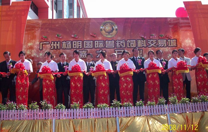 11月5日上午,我省首家兽药饲料专业批发市场——广州扬明国际兽药饲料交易城在广州市天河区长坂举行隆重的开业典礼。广东省人民政府原副秘书长周炳南、广东省人大财经委员会原主任司徒绍、广东省农业厅副厅长、广东省畜牧兽药局局长陈福林等领导和来自全省各地市畜牧兽医系统及兽药饲料行业的企业家参加了今天的开业典礼。