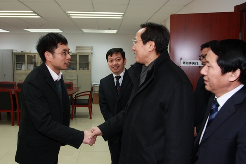 1月28日,农业部部长韩长赋到农民日报调研,并看望慰问报社干部职工。图为韩长赋看望慰问报社青年编辑记者。