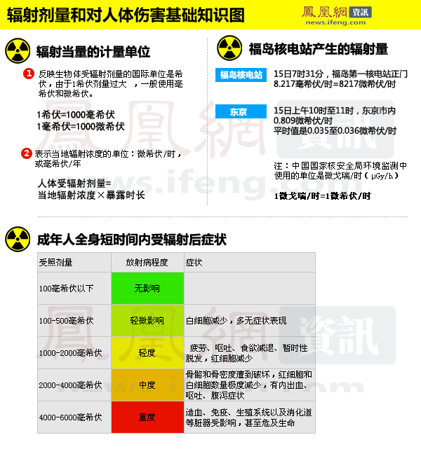 综合世界气象组织和国际原子能机构北京区域环境紧急响应中心、国家海洋局、环境保护部(国家核安全局)、卫生部监测分析认为,日本福岛核电站事故不会对我国环境及境内公众健康造成危害,无需采取任何防护措施。