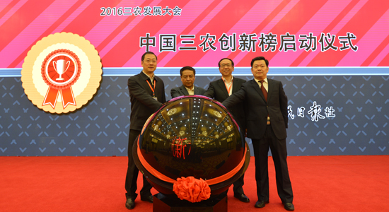 记者2月27日从北京会议中心举办的中国三农发展大会获悉,中国三农创新榜启动。中央农村工作领导小组副组长、办公室主任陈锡文,重庆市副市长刘强,江西省副省长尹建业和农民日报社党委书记、社长唐园结共同启动三农创新榜活动。