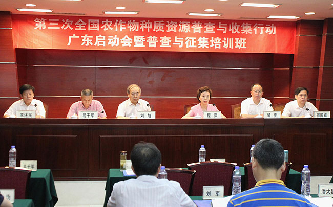 为进一步落实《全国农作物种质资源保护与利用中长期发展规划(2015-2030)》(以下简称《规划》)和《第三次全国农作物种质资源普查与收集行动实施方案》(以下简称《方案》),6月15日,中国农业科学院作物科学研究所在广州举办广东省农作物种质资源普查与收集培训班。我省纳入普查范围的80个农业县项目承担单位负责人、广东省农科院有关研究所的代表共180人参加了培训。程萍副厅长在开班仪式上致辞并宣布启动,项目首席专家、中国工程院副院长刘旭院士、农业部种子局邹奎副处长分别作了讲话。中国农科院科技局王述民副局长主持开班仪式。