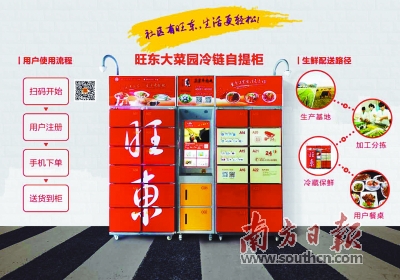广东农行支持的旺东大菜园冷链自提柜。