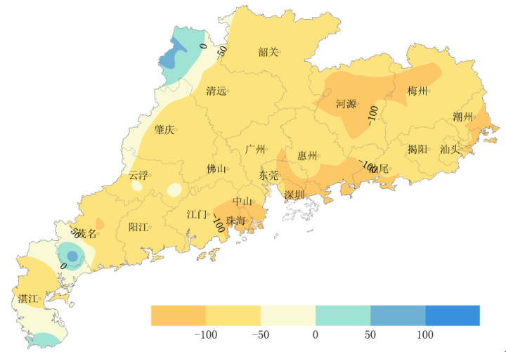 〖内容提要〗上周广东省气温显著偏高,日照偏少,降水显著偏少。晴好天气利于冬种作物生长发育、甘蔗糖分累积及蕉柑柑果膨大。但周内降水偏少,对无灌溉设施的在田作物生长及水库蓄水较为不利。预计,8日起受弱冷空气影响,大部地区日平均气温将逐渐下降3~5℃,建议注意做好冬种作物田间管理工作。